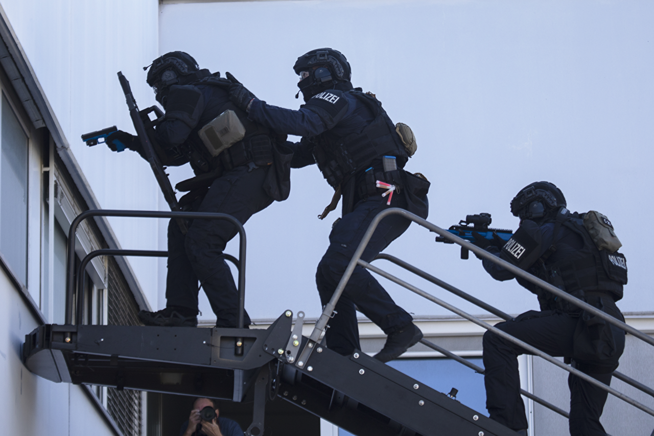 Het betreft hier een oefening van een speciale politie eenheid in Wenen welke is uitgerust met ons COBRA schild.